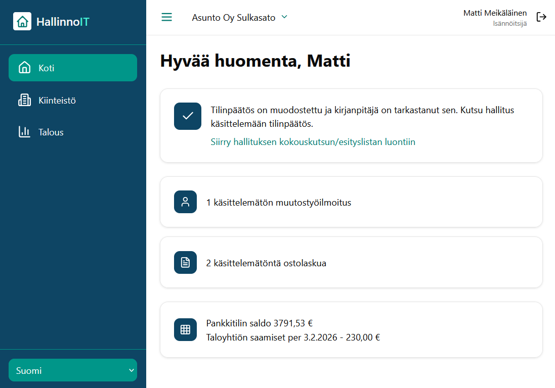 Ensimmäinen kotimainen ratkaisu, joka yhdistää hallinnoinnin, kirjanpidon ja yhteistyöpalvelut samaan alustaan.